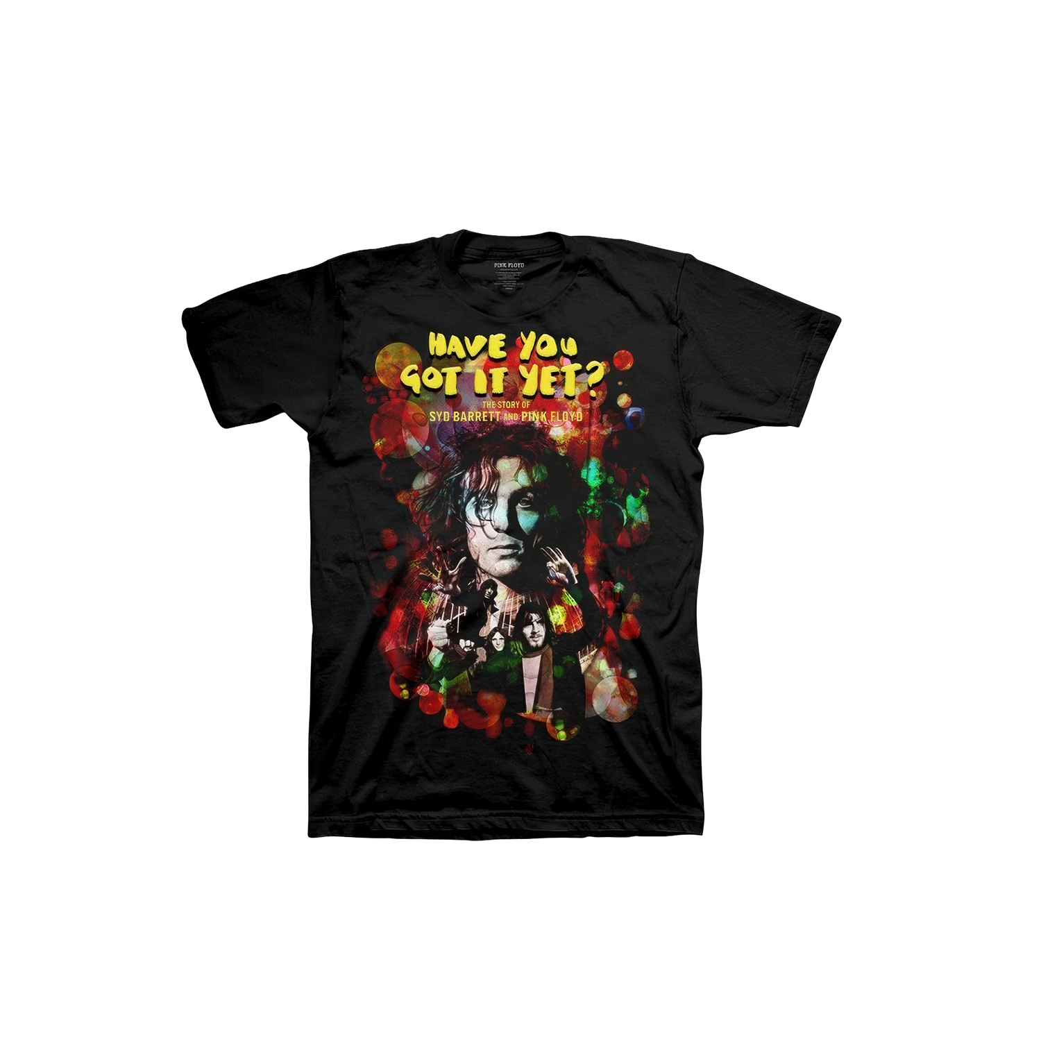 Celebrate the life and art of Syd Barrett with this traditionally screen printed tee with over a dozen colors featuring all 5 members of Pink Floyd. The art for the documentary that explores the cult icon, enigma and recluse Syd Barrett.